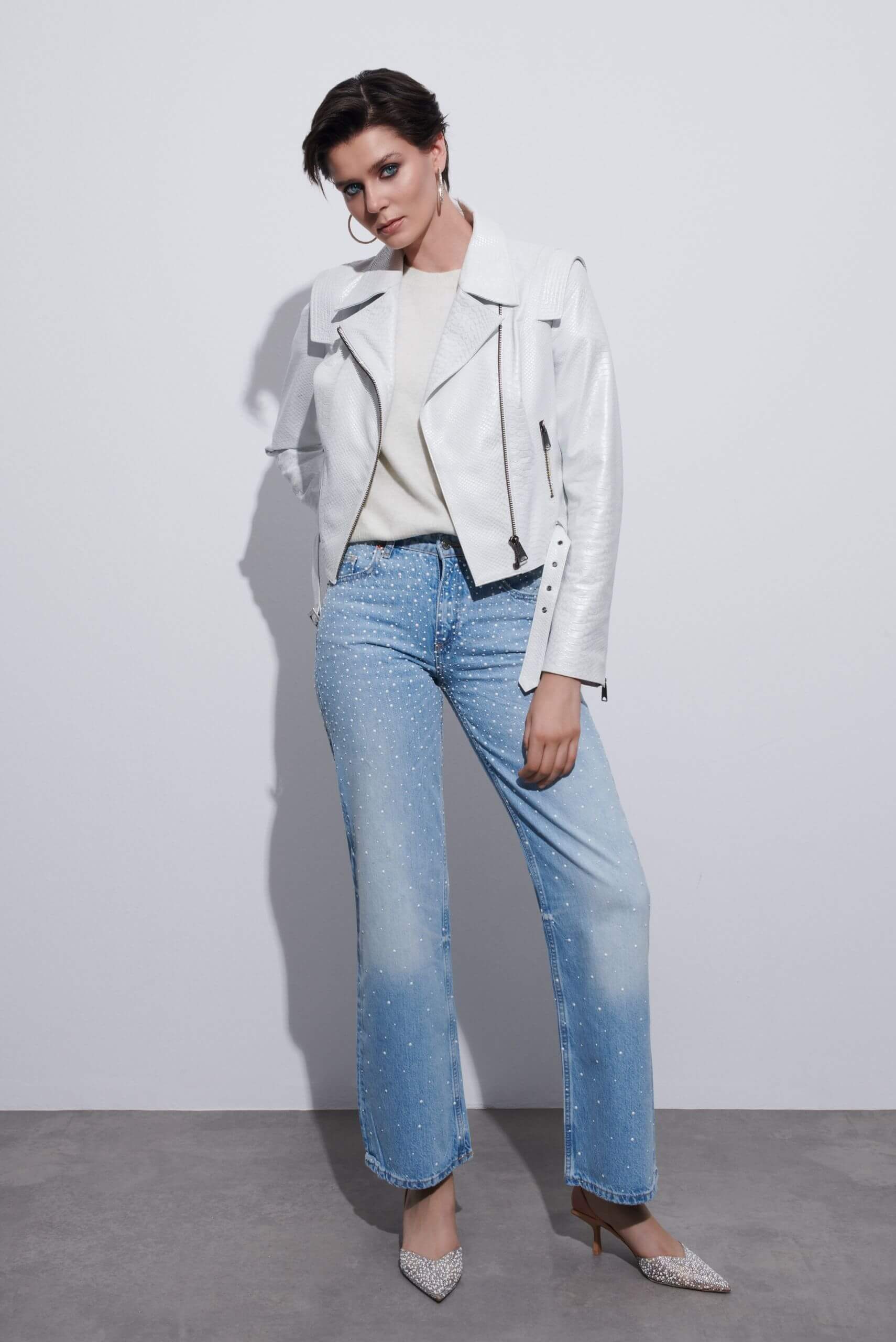 Women often choose black for its daily wear appeal. A cropped black leather jacket with mom jeans and white sneakers creates a modern, minimalist look. Add oversized sunglasses to elevate the street-style factor.